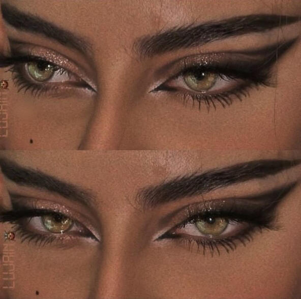 eye color. Gold | Amber. Cat-like in appearance & pupil. Long lashes.