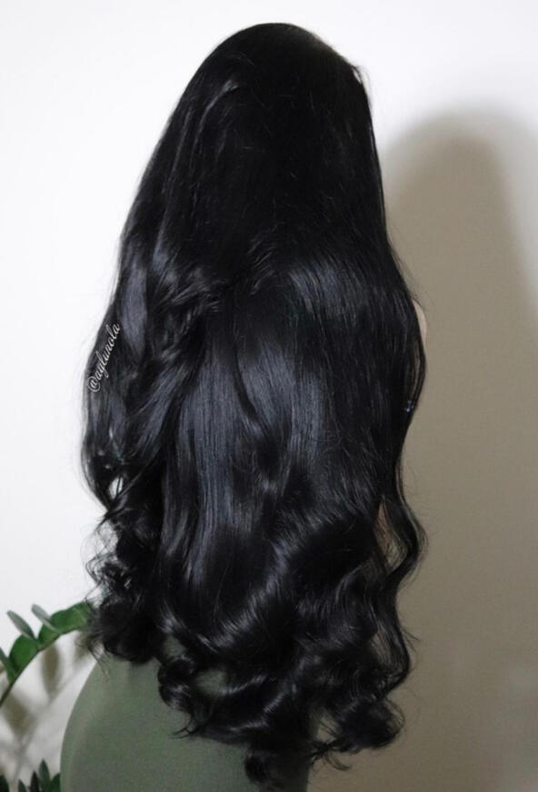 Hair. Raven. Long & Silky. Wavy at the ends. Down to just below the small of her back.
